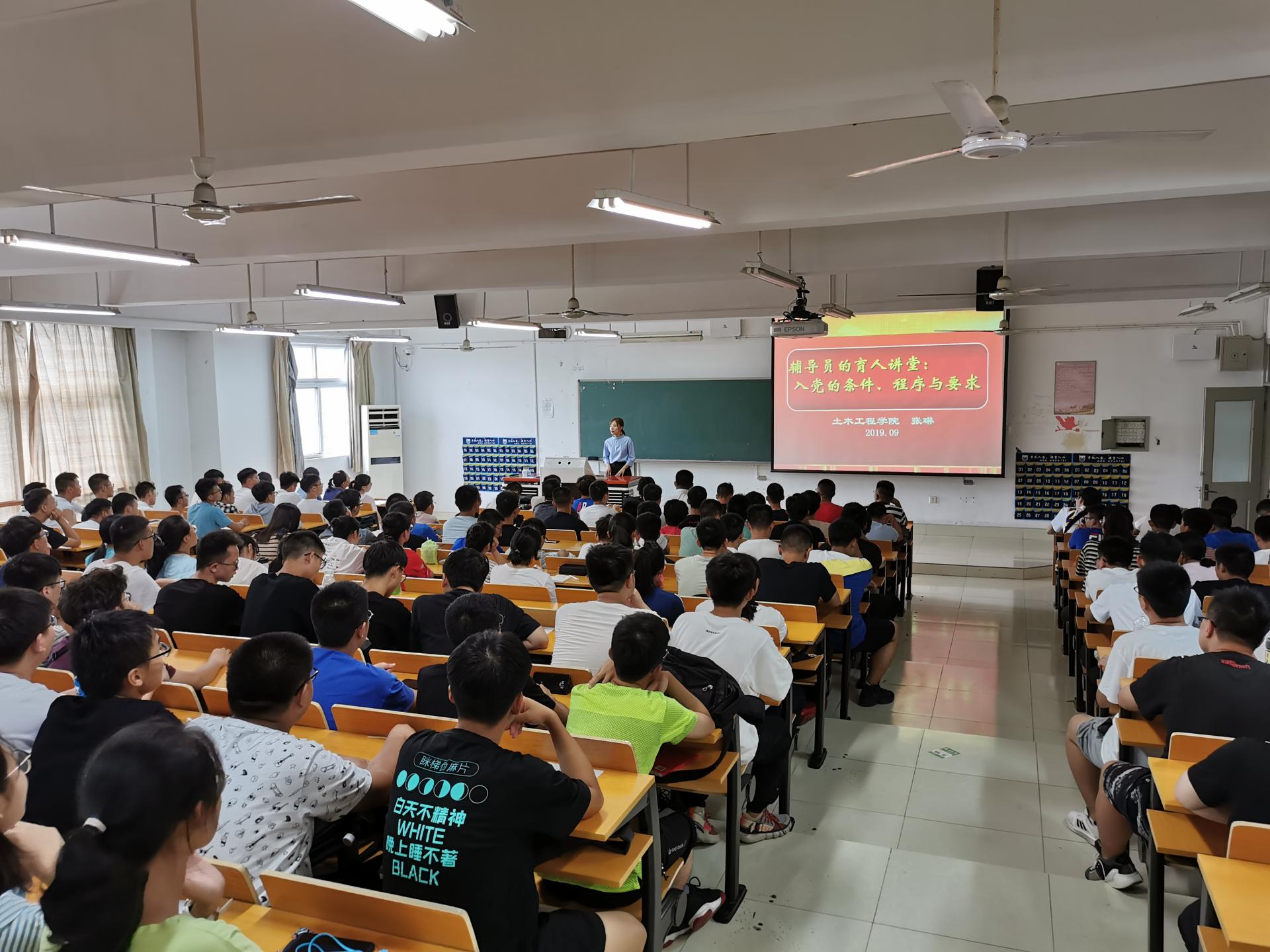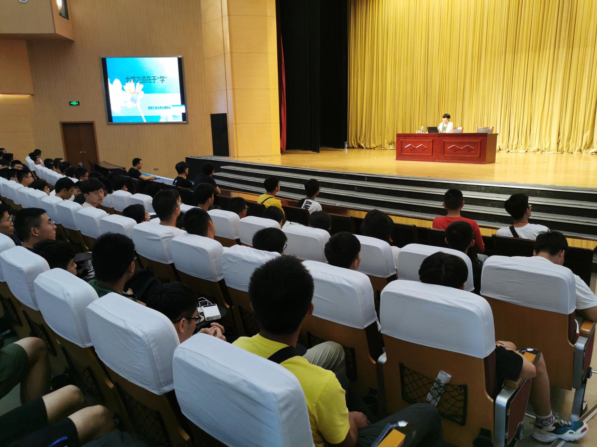 2019级新生辅导员高耀远和黄敬松在《如何适应大学生活》专题讲座上,对新生提出自信、自律、自强、自省的要求。新生入学教育系列讲座的开展,为新生们顺利适应大学生活提供了及时有效的指导与服务,为新生们健康成长发展指引了方向。