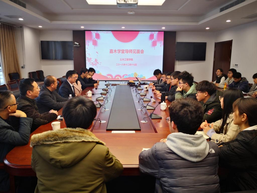 12月17日下午16时,yl6809永利官网第一届嘉木学堂2194班于土木学科楼101会议室召开导师见面交流会。嘉木学堂校外导师、碧桂园集团腾越建筑有限公司总经理马小军,嘉木学堂校外导师、无锡市置景建设技术有限公司董事长蒋秋华,碧桂园集团腾越建筑有限公司江苏分公司总经理邓振国,yl6809永利官网党委副书记周静参加本次座谈。会议由yl6809永利官网副院长王俊教授主持。