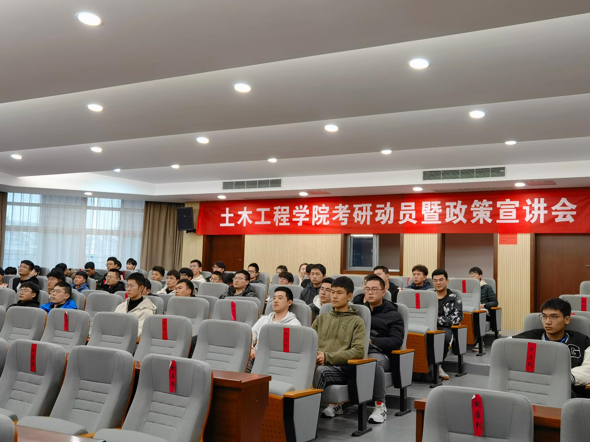 副院长王俊详细介绍了土木工程专业的发展历程、学科优势和科研平台,结合近年来本校研究生招生情况,帮助19级学生进一步理清思路,明确目标,并就专业课的复习思路、调剂的方式、如何权衡就业与考研等具体问题进行了现场答疑。今年成功考取本校研究生的原17级赵帅同学作为考研优秀学子代表作发言交流。