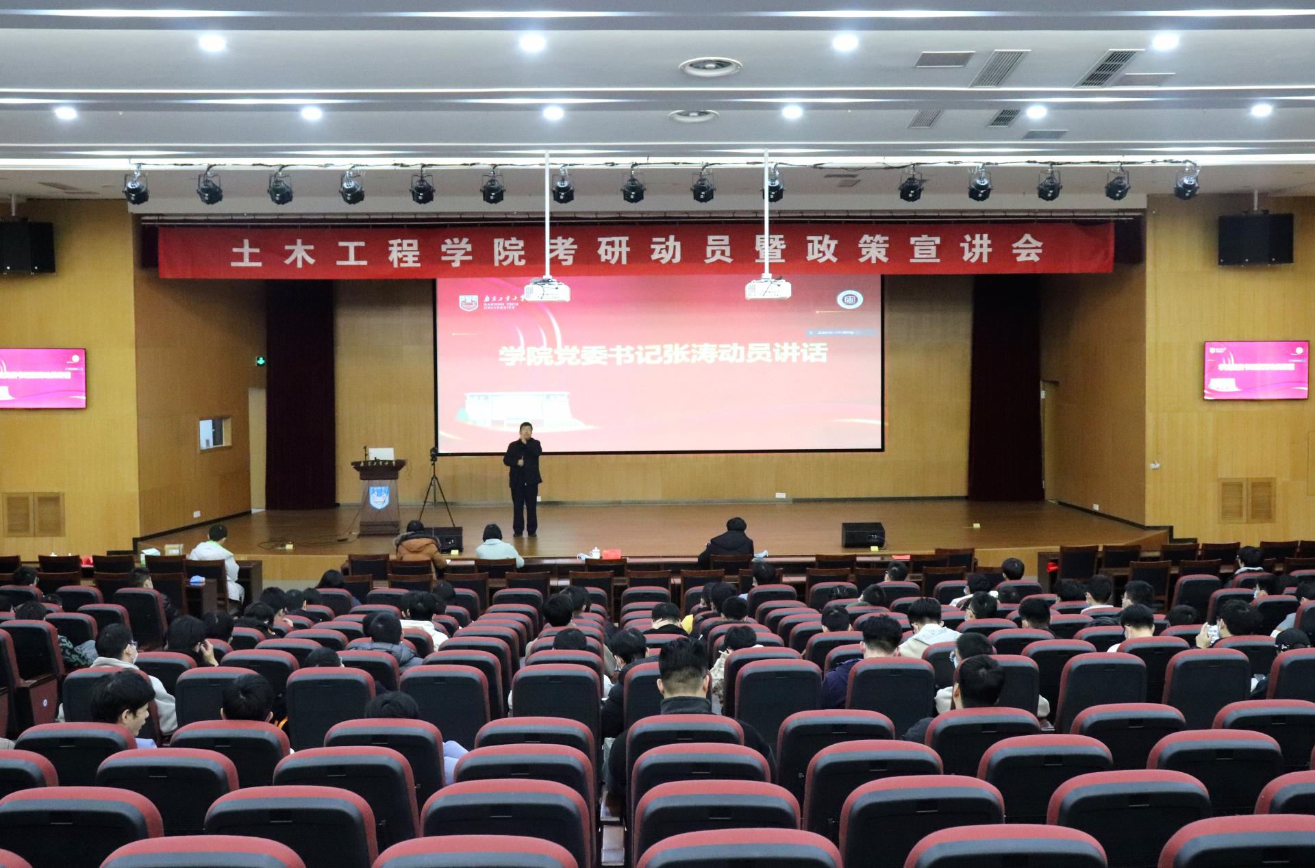 为进一步加强学院学风建设,践行“爱与服务”工作理念,扎实做好2019级学生考研指导,推动土木学子高质量升学,助推学院人才培养高质量发展,yl6809永利官网近日举办2019级考研动员暨政策宣讲会。yl6809永利官网党委书记张涛、党委副书记路遥、副院长王俊、2019级辅导员高耀远、谢雅文及2019级全体学生通过线上和线下方式参加会议。会议由院党委副书记路遥主持。