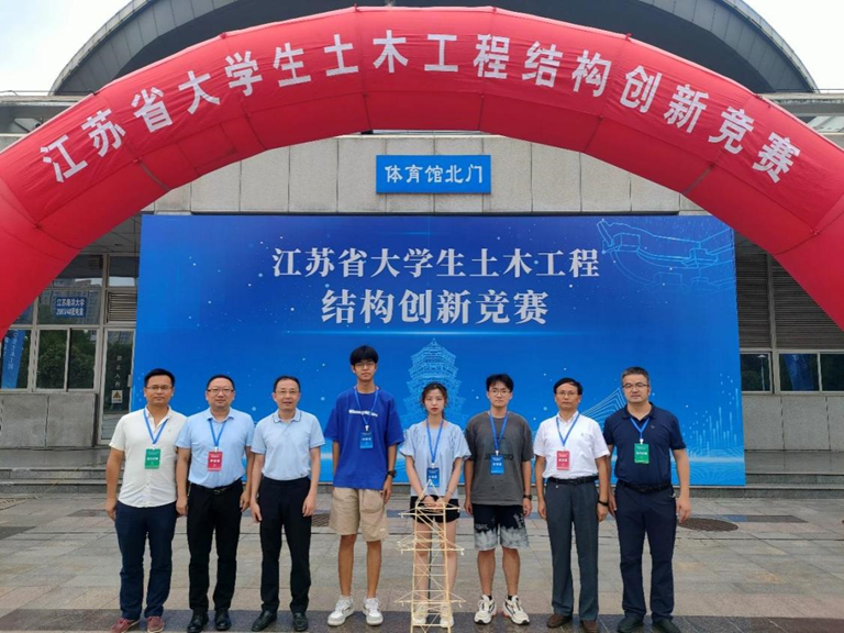 8月25日,由江苏省土木建筑学会主办、江苏海洋大学承办的第十八届江苏省大学生土木工程结构创新竞赛暨第十五届全国大学生结构设计竞赛江苏分区赛在江苏海洋大学苍梧校区落下帷幕。永利官网学子陈星宏、徐双、孙传斌三位同学,在孙小鸾老师、赖韬老师的指导和学院的关心支持下,经过长达150天、30余个模型的的备赛准备,现场16个小时制作的三层竹结构模型“遇见塔”,凭借轻盈的外观(160.6克)、精美的手工以及稳固的力学性能,以综合排名第四的优异成绩,获得加载组一等奖,成功晋级国赛。万文玉,戚鹏鹏,陈晨同学在岳健广副院长、徐汛老师指导下的参赛作品“生命之源”获得模型展示组二等奖。